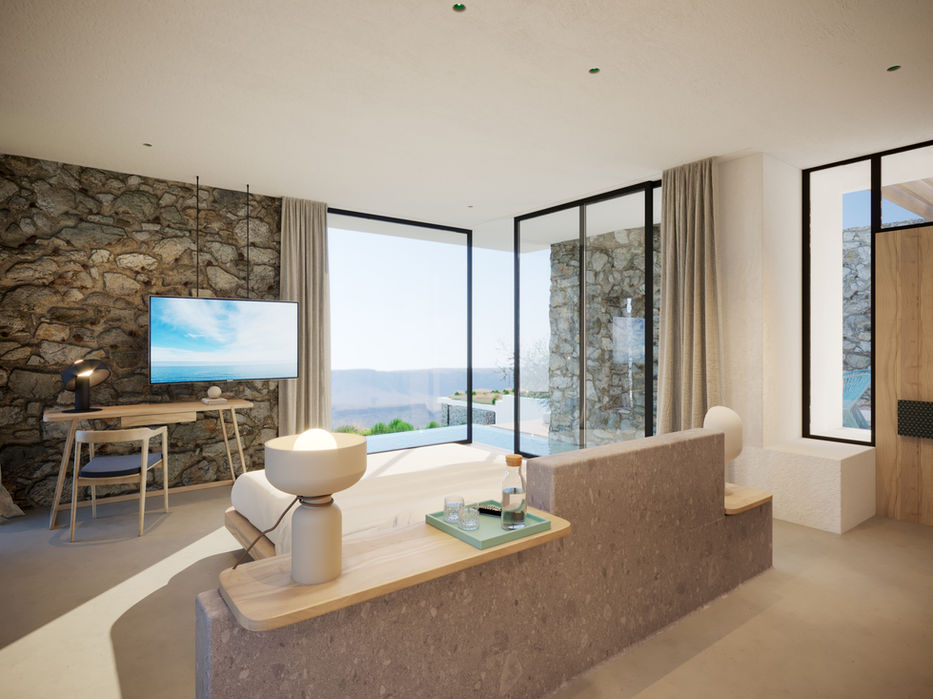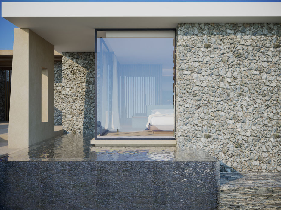 Form follows emotion rather than function, as every space becomes another opportunity for rest, reflection and exploration. We needed to provide escape from the intensity of the greek climate, providing shade and protection from the elements. Isnpired by the humble complexity of the traditional island vernacular, the villas work around a courtyard style living area- the focal point of each home...